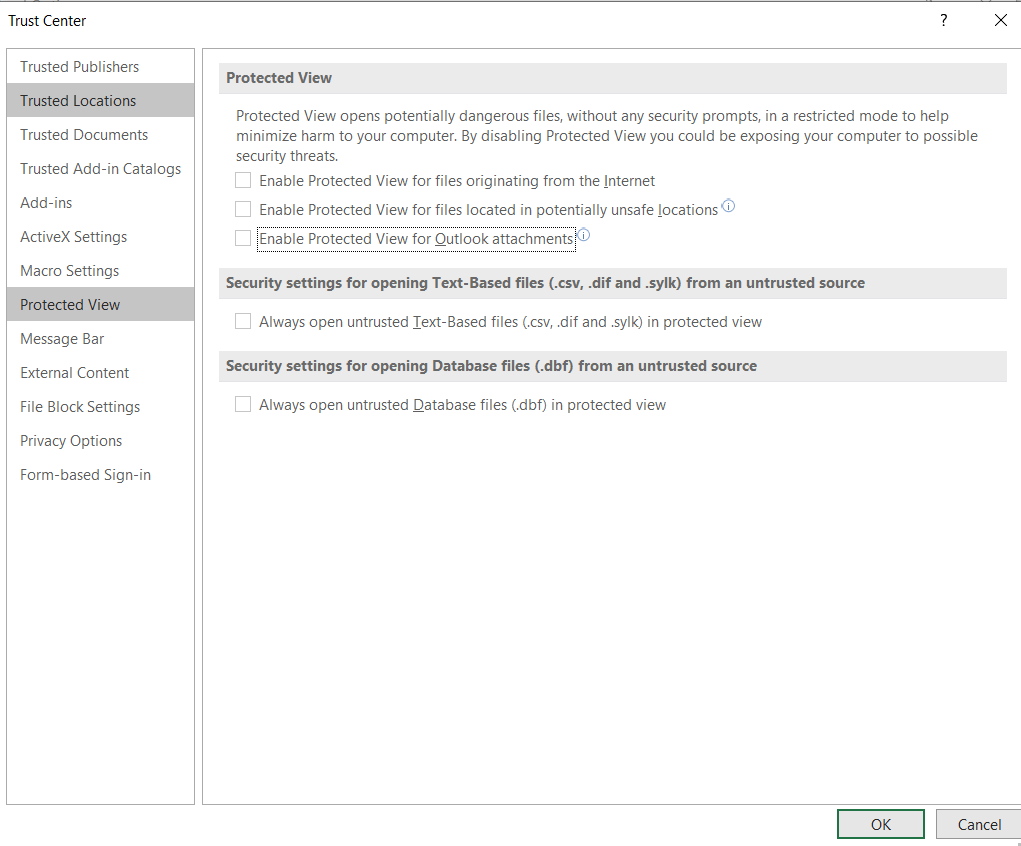 When I open some Excel files, I get the message that "File couldn't open in protected view"