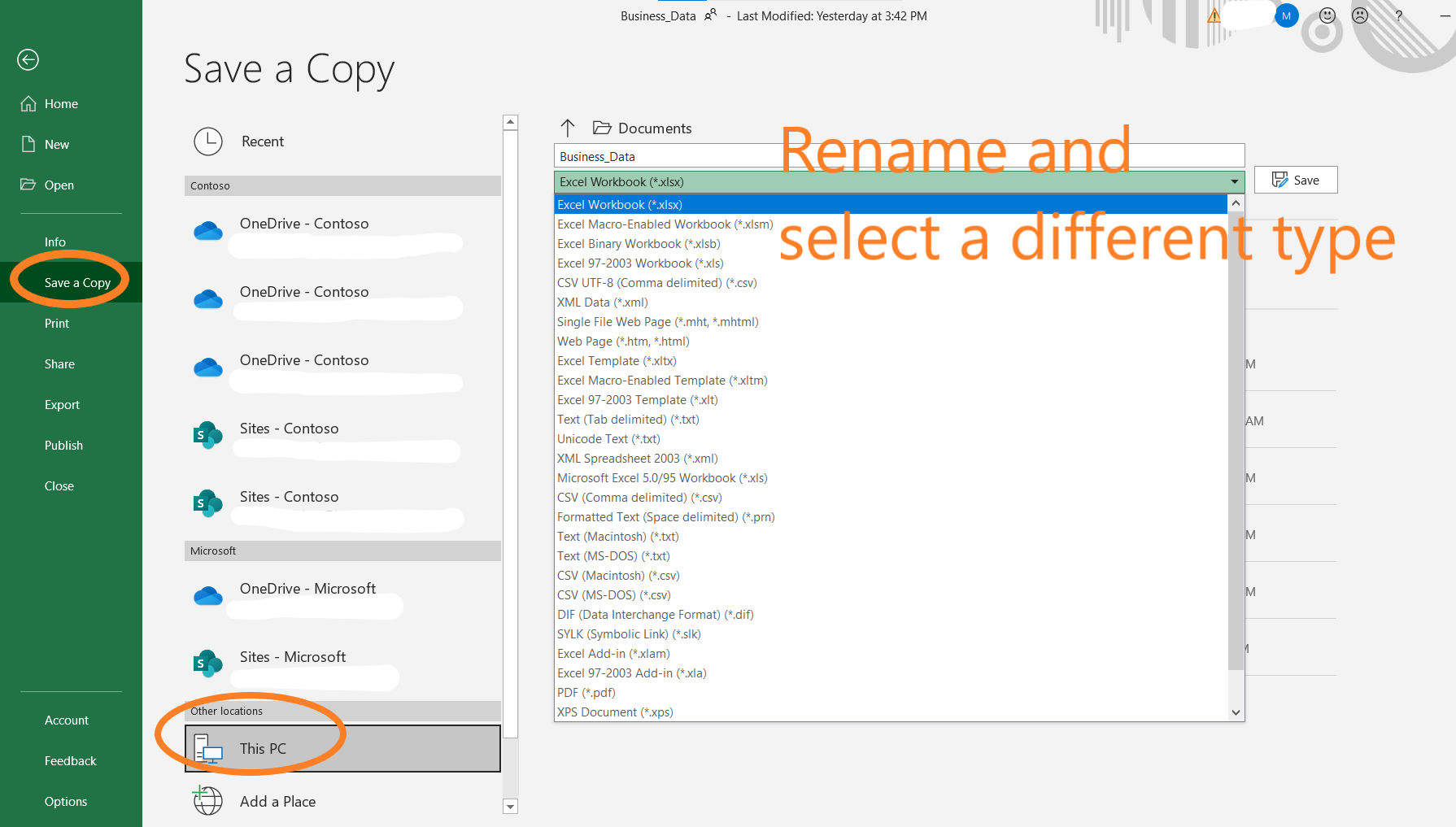 May I know if these issue files have been downloaded on the local PC? If so, please check if their file type is .xlsx as the newer Excel format if you are using the latest version of Excel. After opening the file with the workaround you discovered, click File and click Save a Copy. Select the location as you want(local PC is recommended but OneDrive is also good) and rename the file and select another file type.