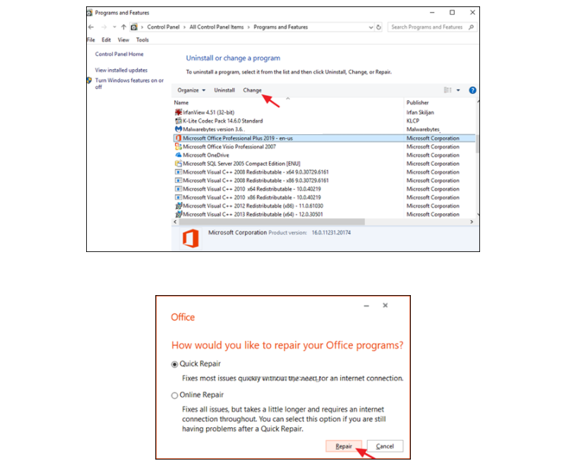 Check the result after the repair process is completed by opening the issue file in Excel to see if everything back to normal. If the issue persists, try the Online Repair option again.