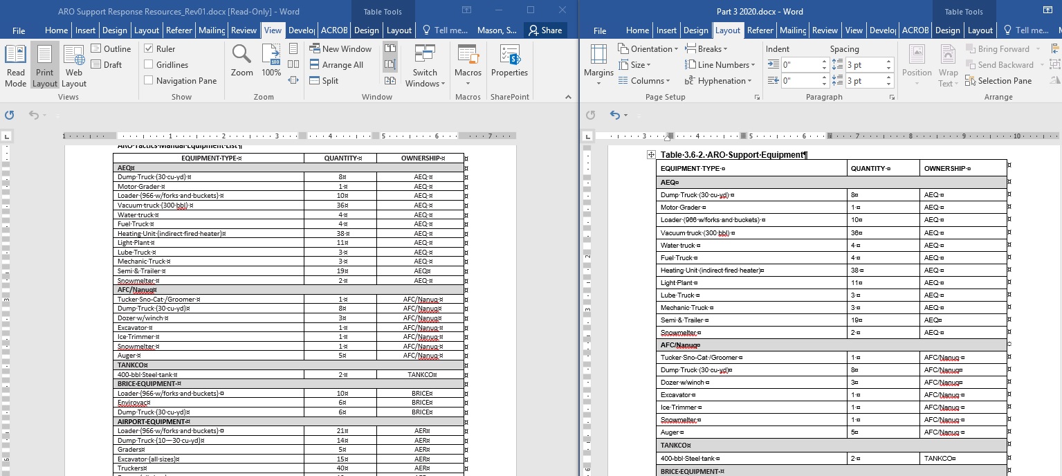 Another example below from a different document. A colleague sent me a table, to the left, created in latest version of Word today in Normal.dotm template. I was supposed to paste it in another document, to the right, which I created a couple days ago in