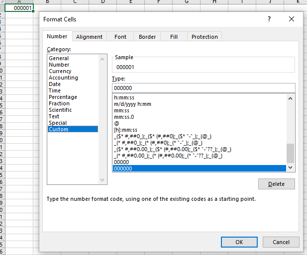 If you want numbers stored as numbers to have leading zeroes on the worksheet then you have to format those cells appropriately. Here is an example of a number with six positions, five of them are leading zeroes: