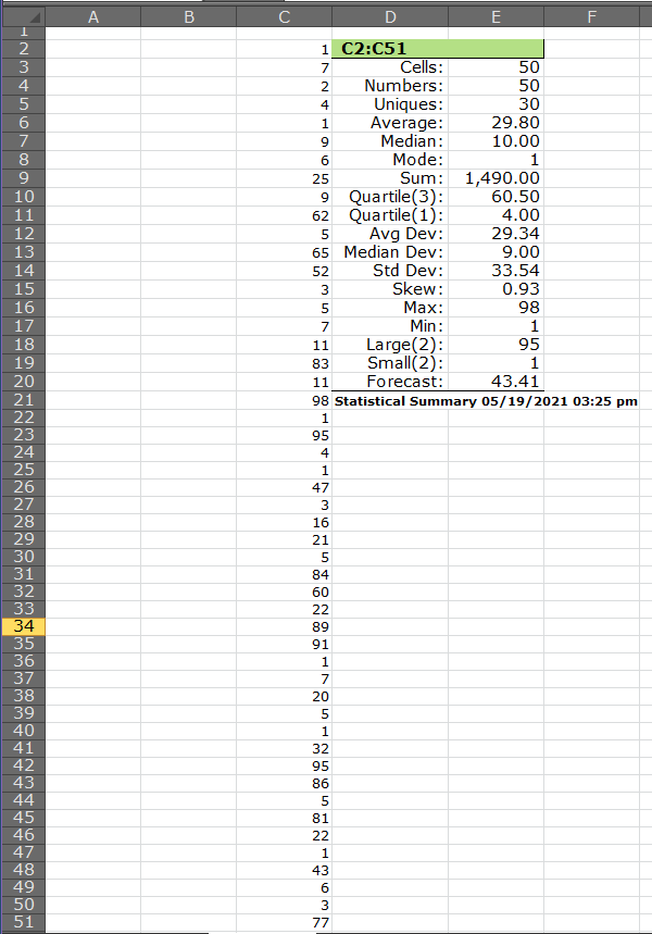 - Go to Data / Data Analysis / Descriptive Statistics.