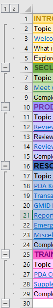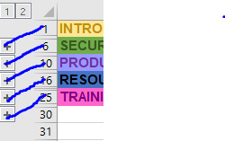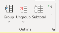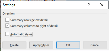 - Select the section of rows and go to the Data tab and then in the Outline/Group section select the arrow in the bottom right box to open Settings. By default, both "Directions" are checked. Uncheck the top box "Summary rows below detail" and it will make the + sign line up with the heading row.