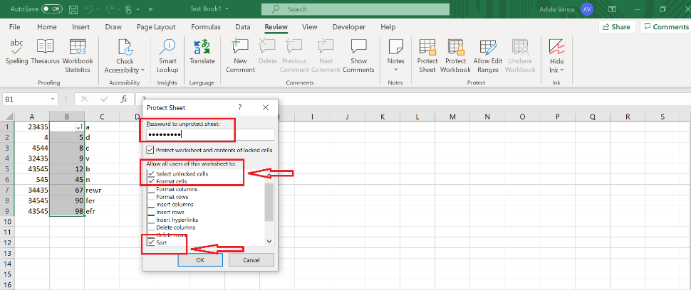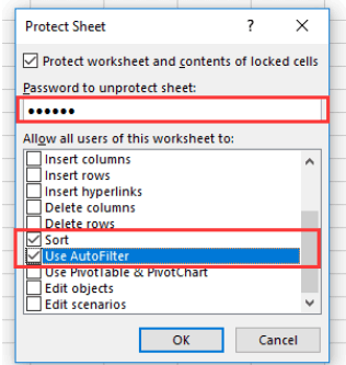 To allow sorting/filter in a protected Excel sheet, please try the below following steps:
