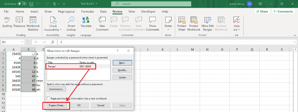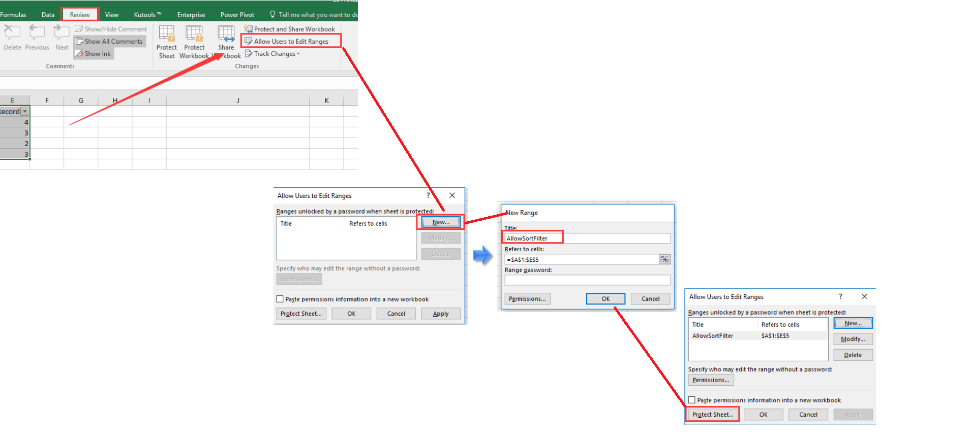 4.Click OK to go back to Allow Users to Edit Ranges dialog, and then click Protect Sheet.