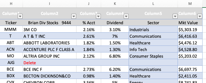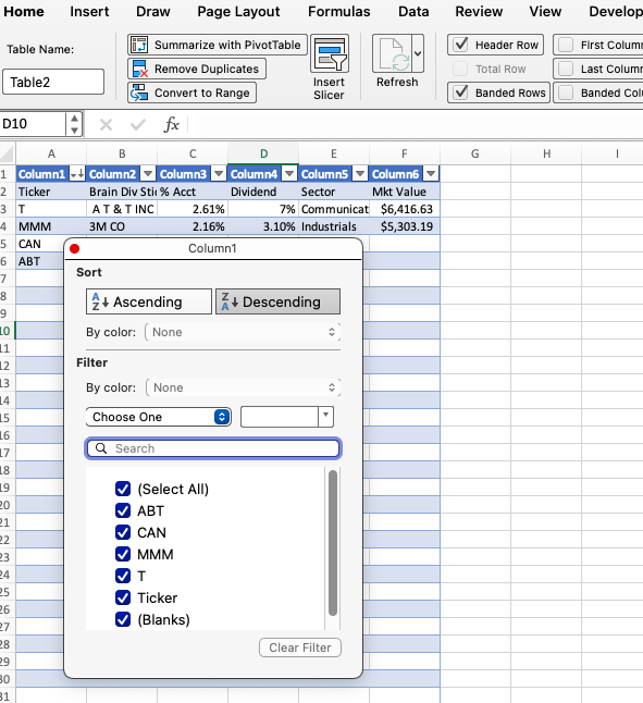 The main issue is that you are converting only one single column to a Table rather than converting the data range. There may be some rare instance where that would be appropriate but for the overwhelming majority of purposes a Table should encompass the entire data range [list of records]. If you Sort as it currently is, only the content of the Sector column will be sorted. IOW, that column is effectively disconnected from the remainder of the data.