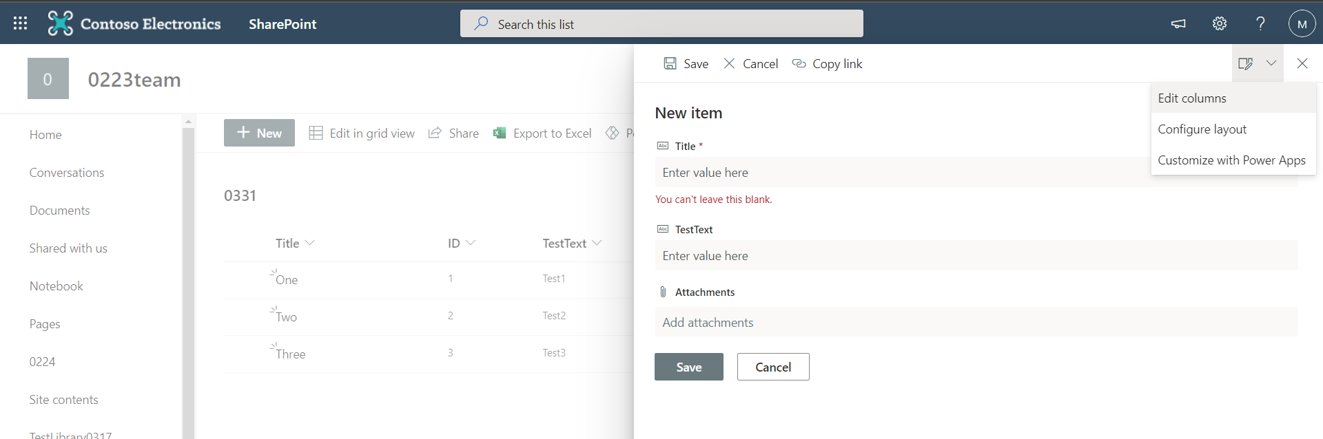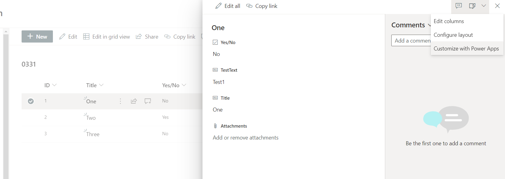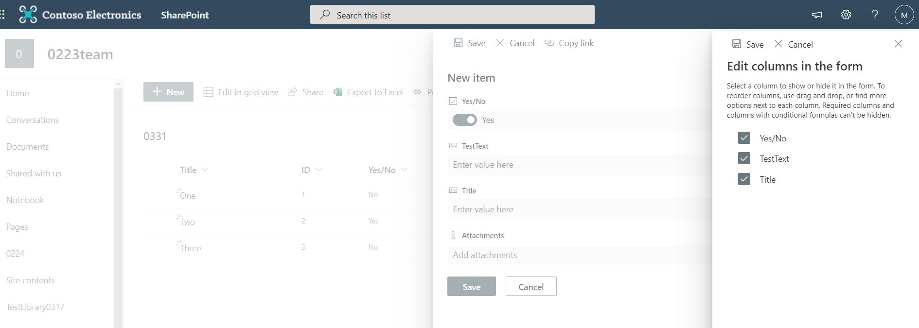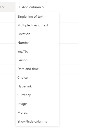 1.After opening the list you want to modify, click Add column > Show/hide columns if you want to show the ID column(which you may have already done).