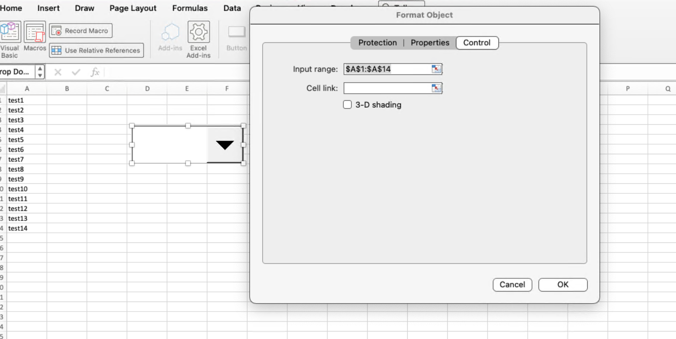 The drop-down menu is Combo Box in Excel for Mac. You can try it to see the result. If something is misunderstanding, welcome to share your updates at your convenience.