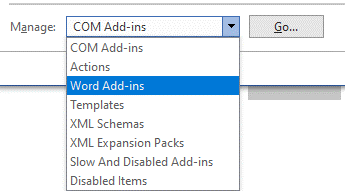 Thanks for the update, besides Com add-ins, please also check Word add-ins you may use, You may go to File>Options>Add-ins, select Word add-ins.