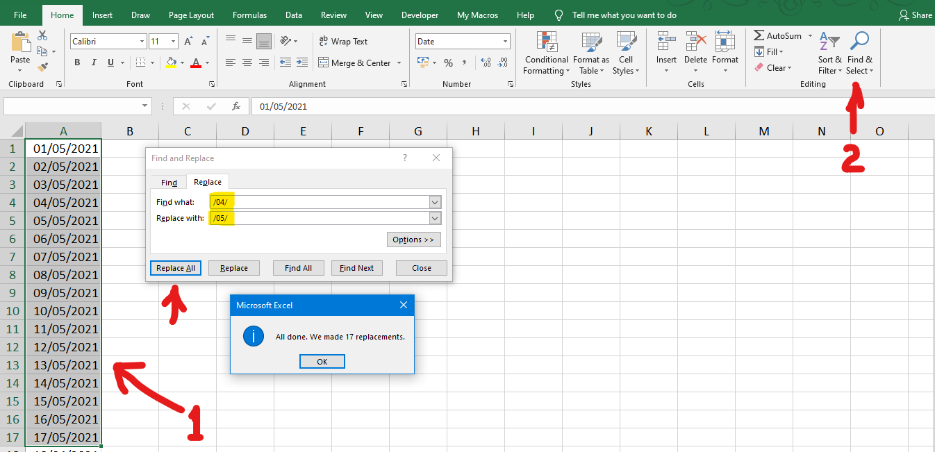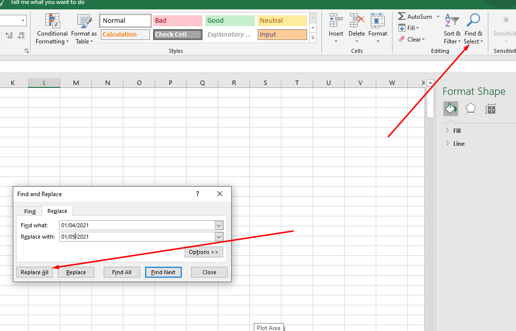 Option 2 ) Using Find and Replace in Excel