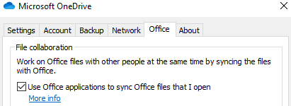 Go to OneDrive sync client-> Setting-> Office-> check the option “User Office application to sync Office files that I o****pen”.