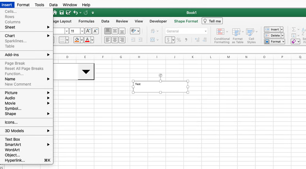As there is no text box control in Excel for Mac, you may need to use the text box as a workaround. However, this option will not automatically transfer the data user submitted. You can send the form file to your users by emails and let them email you with the edited form files.
