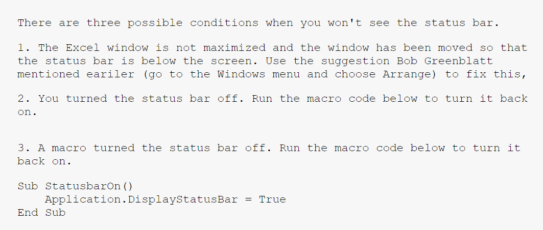 If yes, I found a thread which has the similar issue with you, you can try the methods in this thread which helped many users to see the result: Status bar missing in Excel 2016