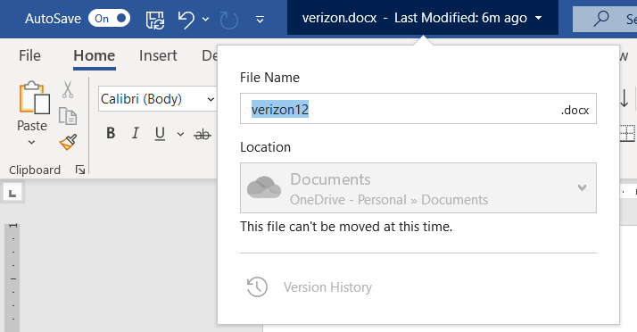 To re-open the file, open it from within the Word application. For this, Go to Filethen Open, select OneDrive-Company name, select a file to open it.