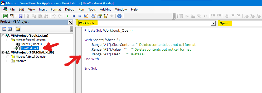 1- The code goes on the Thisworkbook module Procedure as shown in the picture below