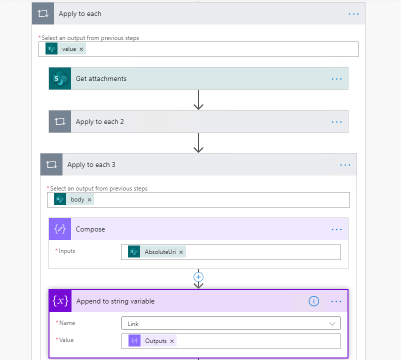 There may be no direct way exporting the attachments' links to an Excel file by using the Export to Excel option. As a workaround, you can create a multiple-line column to save all links URL of the list attachments and create a flow as follows to get the links in the list and then use the Export to Excel option to get the links' URL in the Excel file.