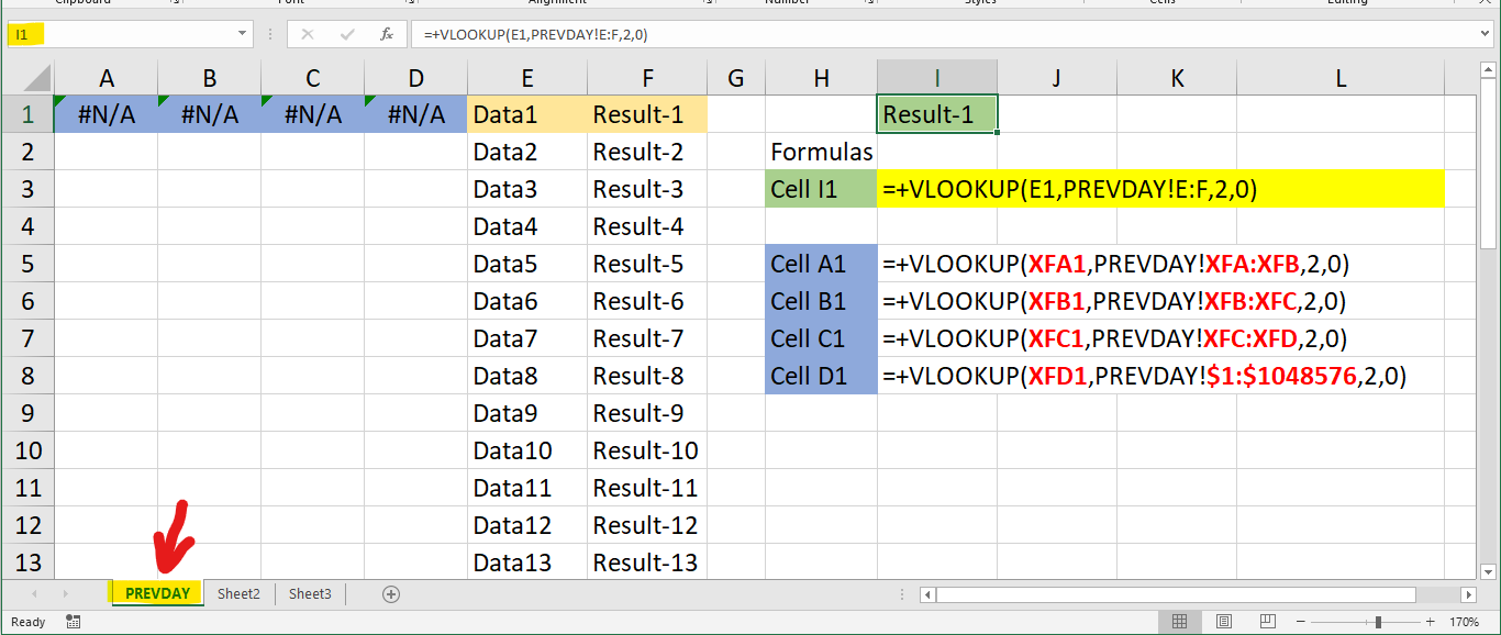 The lookup resulting formula will be set at the end of the worksheet ranges columns as indicated with bold RED color in the picture.