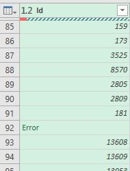 I have a column which list all number, but some rows become error when I change the type of this column as Number