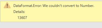 I checked this cell "13607" is without any space before "1" or after "7", and I also run Trim before convert into number, but it still come out this error.