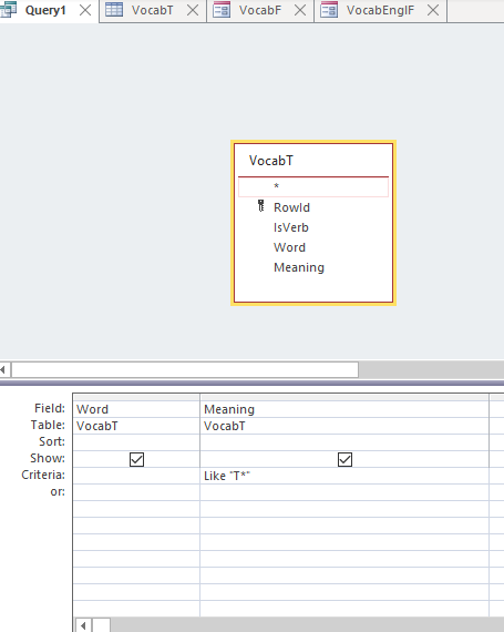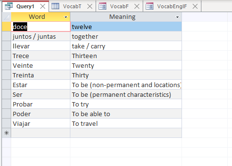 I have a fair amount of experience in Access, VBA and SQL, but for some reason, I am experiencing a very strange phenomenon. I have a single table (so no relationship issues) with only four fields, which I use to help me learn a new language. One field is the foreign word, the other is the translation.