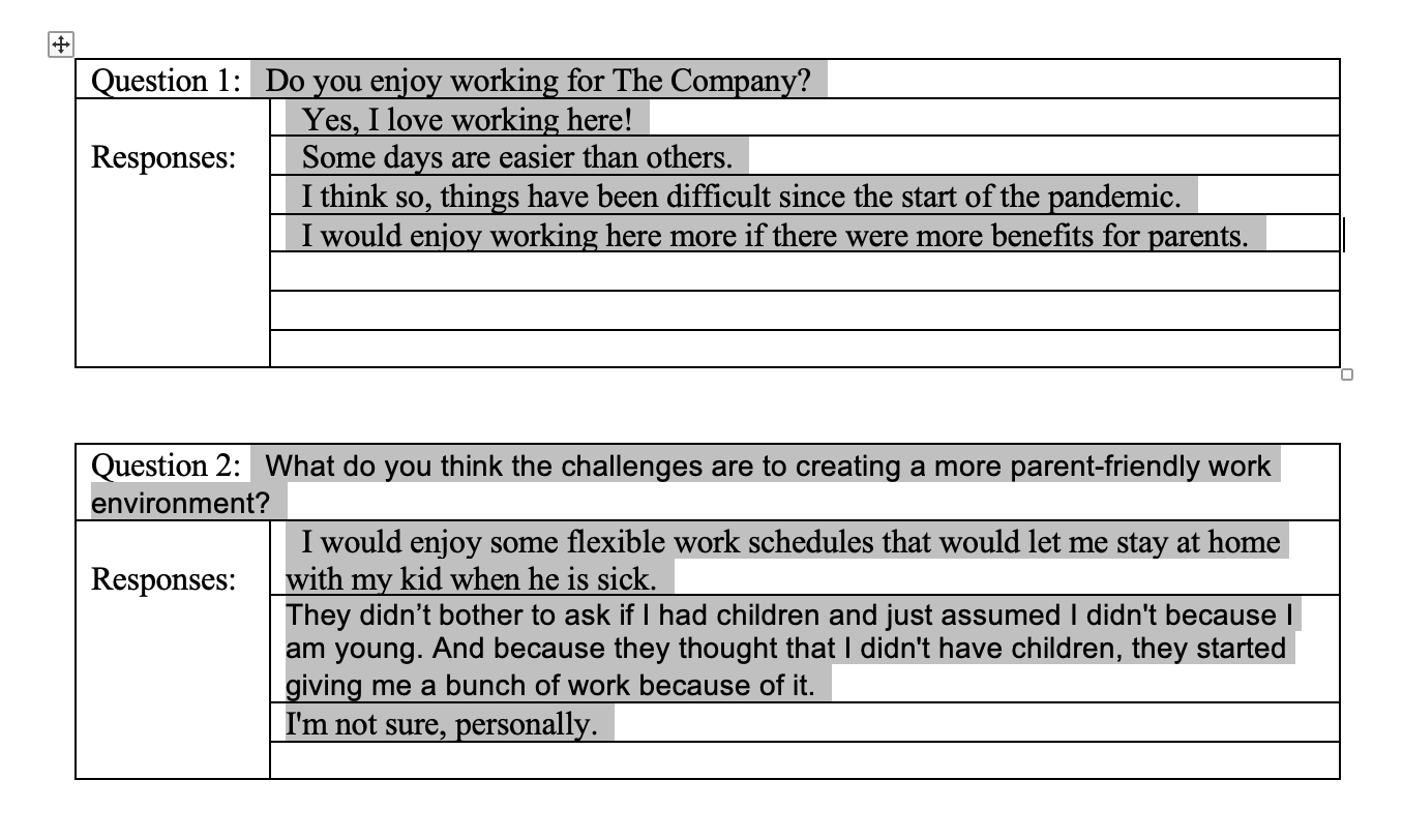 You can insert blank rows into the Word table by right click > Insert command > insert row above (or below current row).