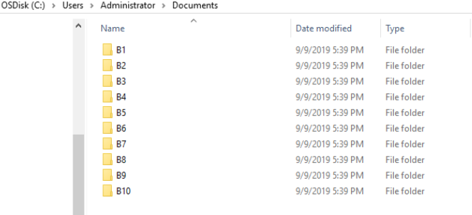 The command will run automatically as create a list of folders under the target location. In this case, the folders are created under C:\Users\Administrator\Documents. Then, you can drag the folders and upload to your SharePoint library. As shown below:
