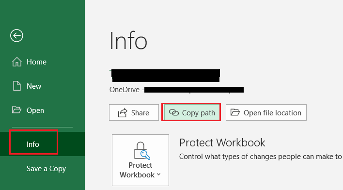 Clicking “Copy path” will give you a path in this format: https://Tenant.sharepoint.com/sites/SiteName/Shared%20Documents/FileName.xlsx?web=1