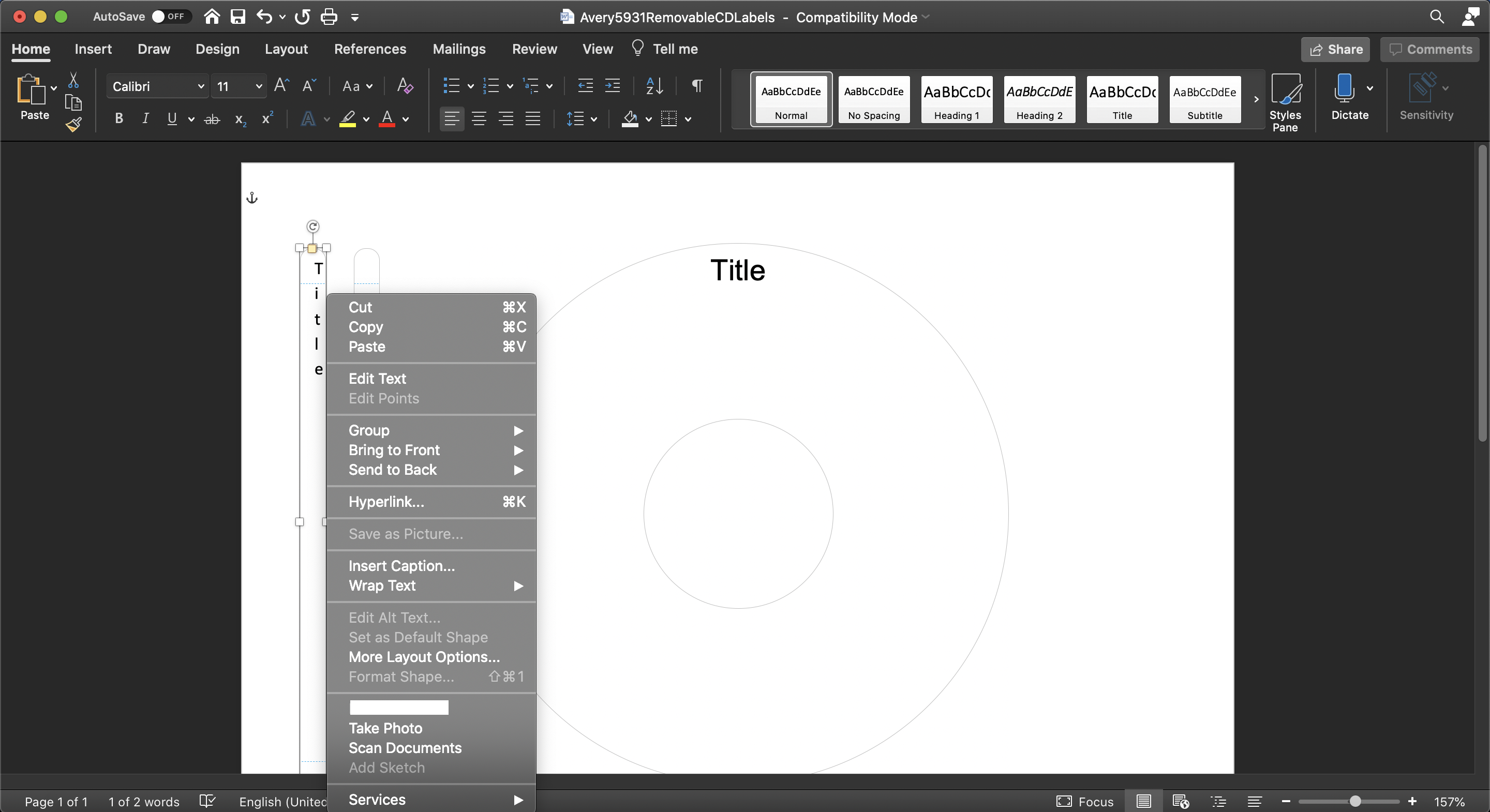 The problem is that it is a "template" you located on the Avery site. They don't actually download templates. They generate Word documents in the deprecated .doc file format & include shapes created by the abandoned graphics generator which aren't compatible with the current software.