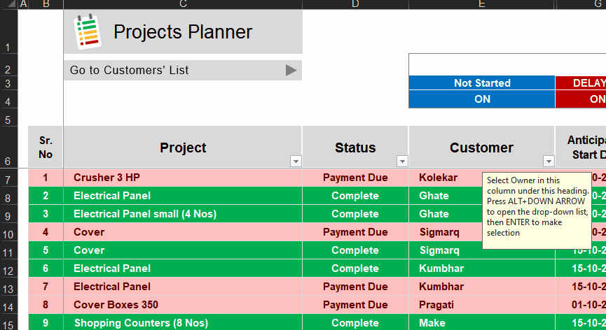 I have a project management worksheet keeping track of all ongoing/past projects.