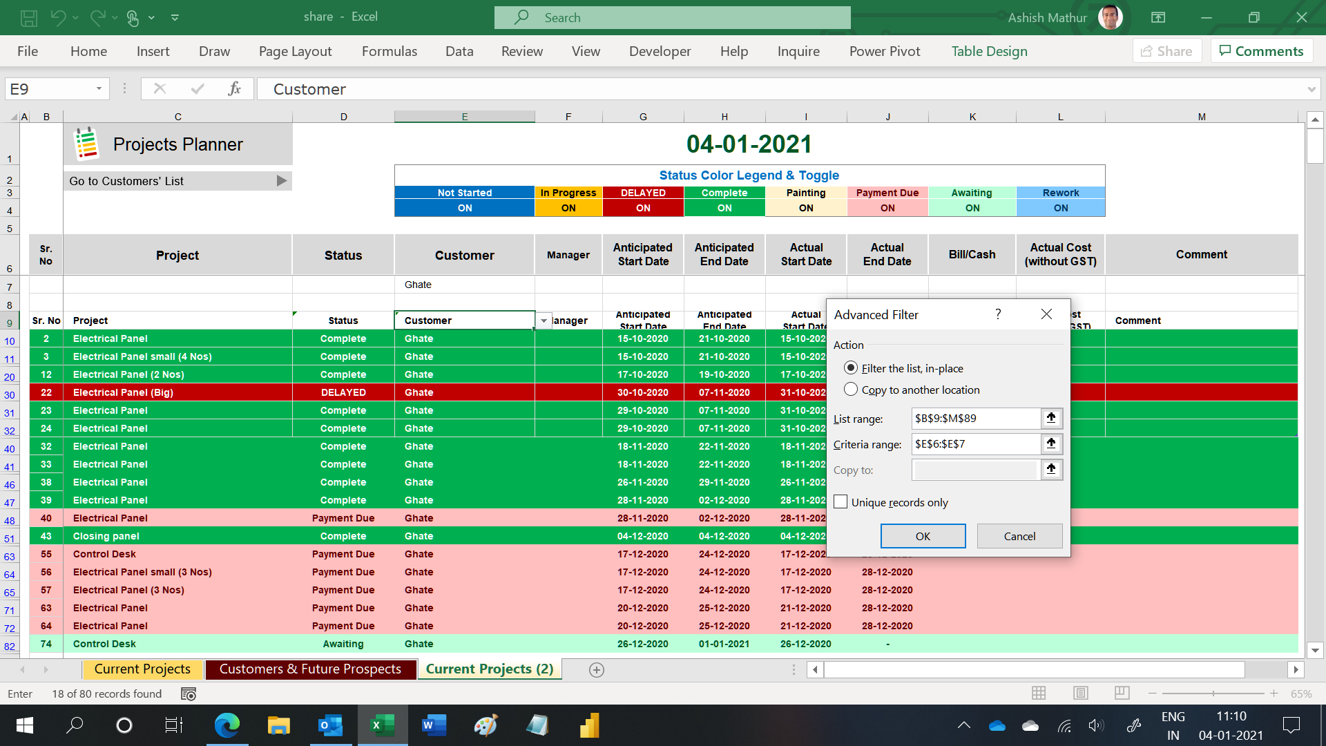 I have a project management worksheet keeping track of all ongoing/past projects.