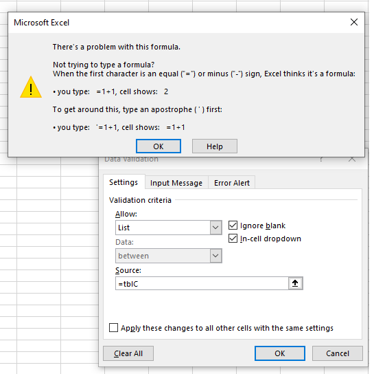 It seems that didn’t give a define name for your “Name” column in your Excel, which the Data validation won’t recognize the data in your table in this scenario.