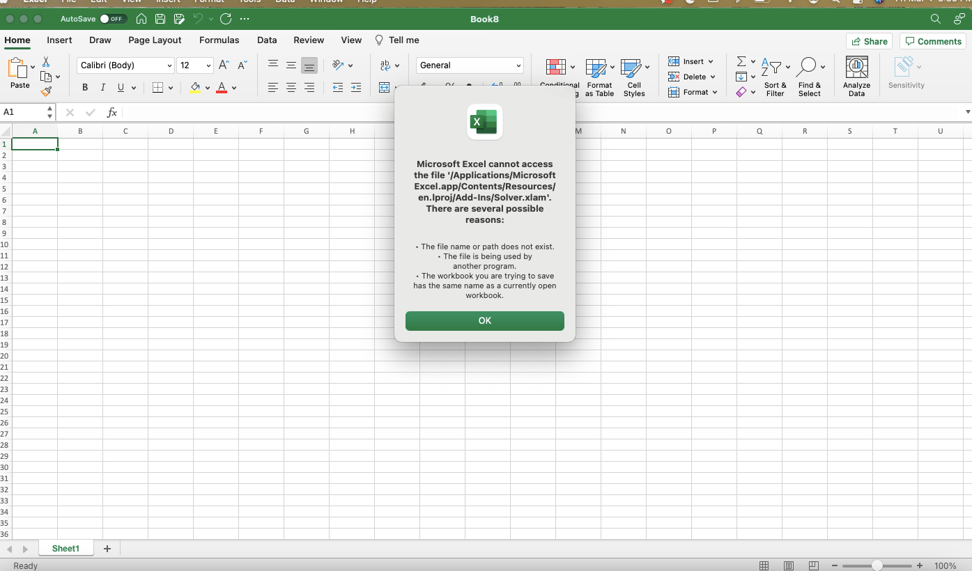 As the error message indicate, could you go to Finder > Application > Right click on Excel app > Show Package Content.
