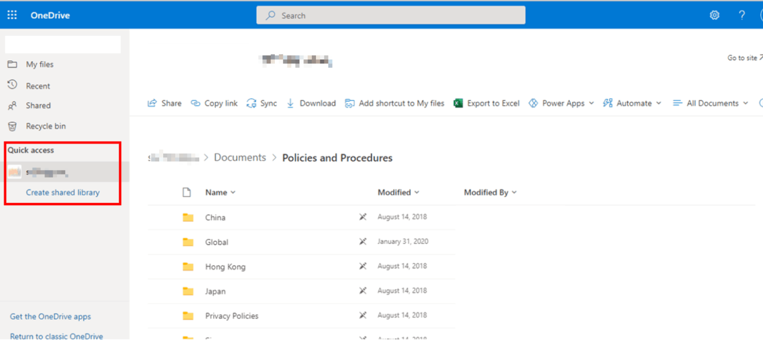 Based on your description, you want to remove and add shared library under Quick access part in your OneDrive.