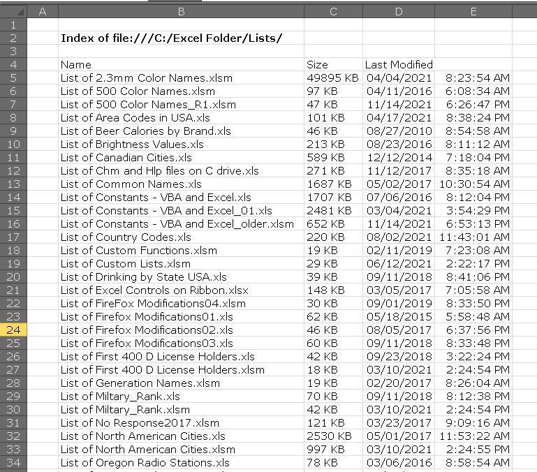 Select the folder that contains those video files and follow the steps, that should list all files and their properties and you can then discard the columns you do not need