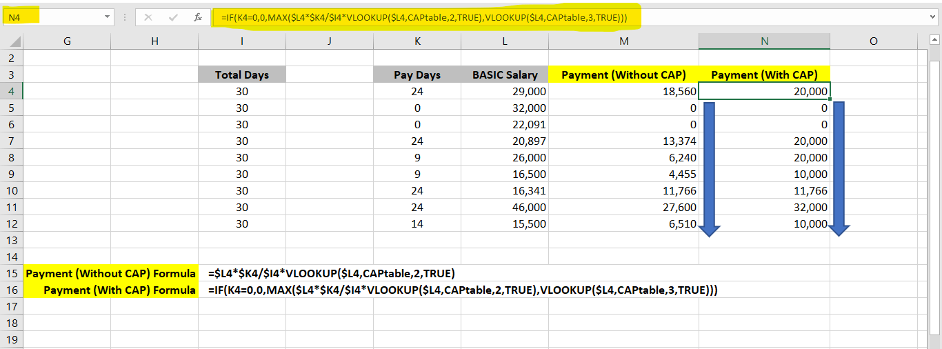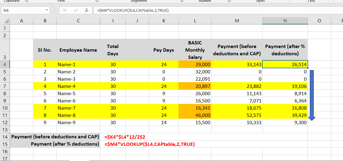 Payment (after % deductions) =$M4*VLOOKUP($L4,CAPtable,2,TRUE)
