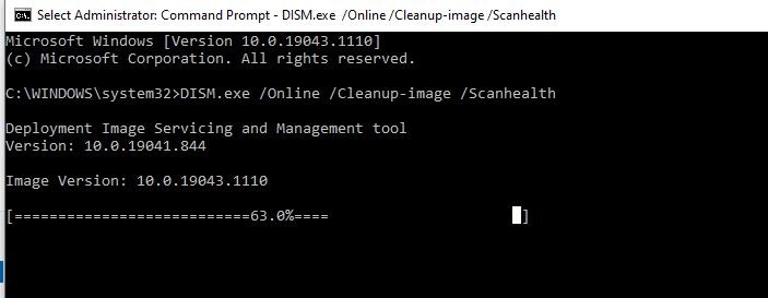 2. When I was running "DISM.exe /Online /Cleanup-image /Scanhealth" it froze on 63%