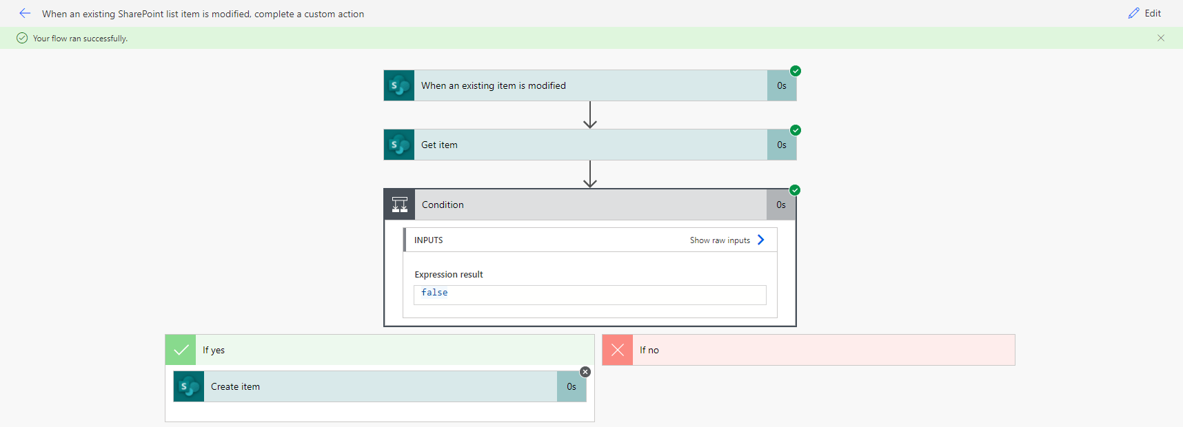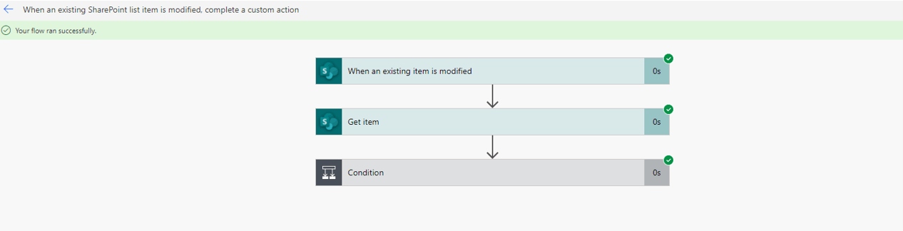 When I test the flow, it shows all the steps succeeded, but the corresponding request is not created in the (Back-end) list as I am expecting.