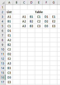 =INDEX(C3:G5,INT(SEQUENCE(ROWS(C3:G5)*COLUMNS(C3:G5),,0,1)/COUNTA(C3:G3))+1,MOD(SEQUENCE(ROWS(C3:G5)*COLUMNS(C3:G5),,0,1),COUNTA(C3:G3))+1)