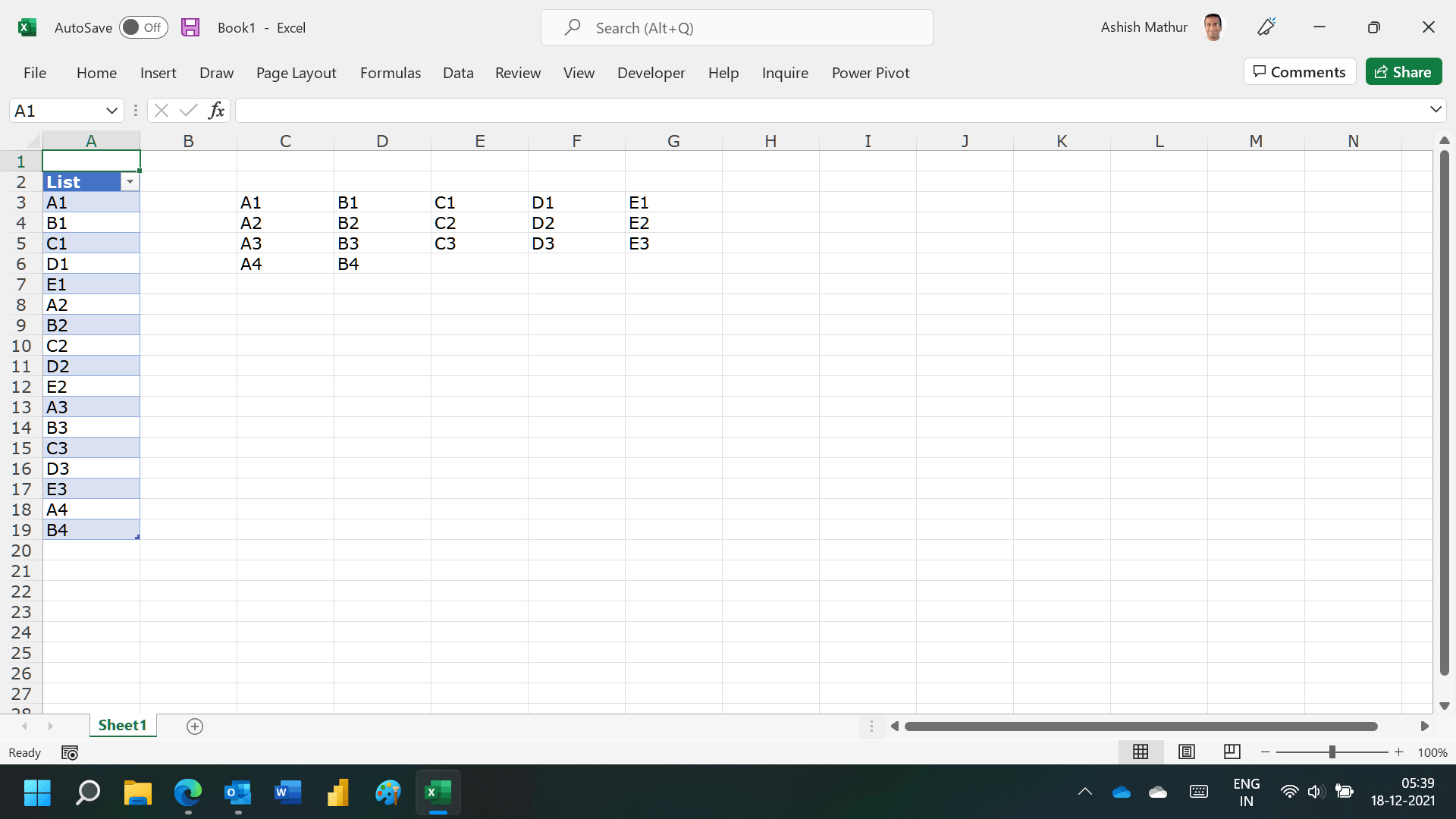 Try this formula in cell A3: