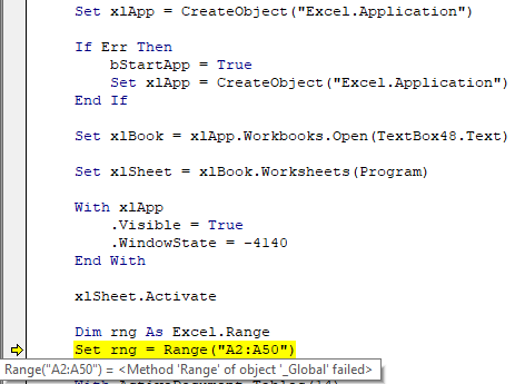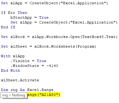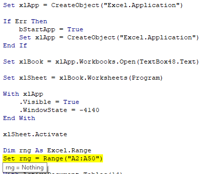 I call the workbook to be visible and sheet to be active as recommended prior to set rng.