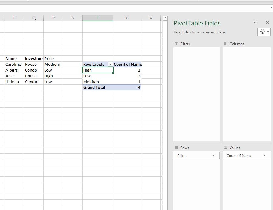 As you can see in the very basic example below where I used recommended Pivot Table, it created the table but I can't see any fields and so cannot change it
