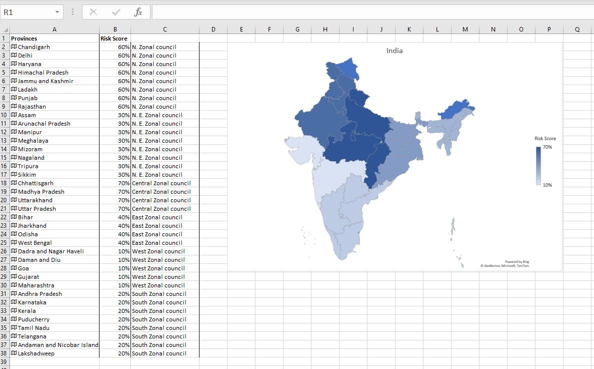 I've previously posted regarding issues (bugs) with the way the Excel Map chart feature works. I've been putting country risk charts together for a client and I'd like present the data in a map chart. I've found that sometimes it works and sometimes it doesn't requiring you to repeat the process of selecting data in order for it to finally respond. In my previous posts I had issues with getting East and North African countries to display. I eventually got them working by creating them in totally new spreadsheets and then copying/pasting the new chart into my previous spreadsheet (Thank you to Alex Chan for your help here). It seems really inconsistent and I would appreciate Micrsoft looking into this.