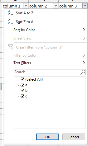 e.g. in the screenshot below, I clicked on cell A2 and selected A2:C8