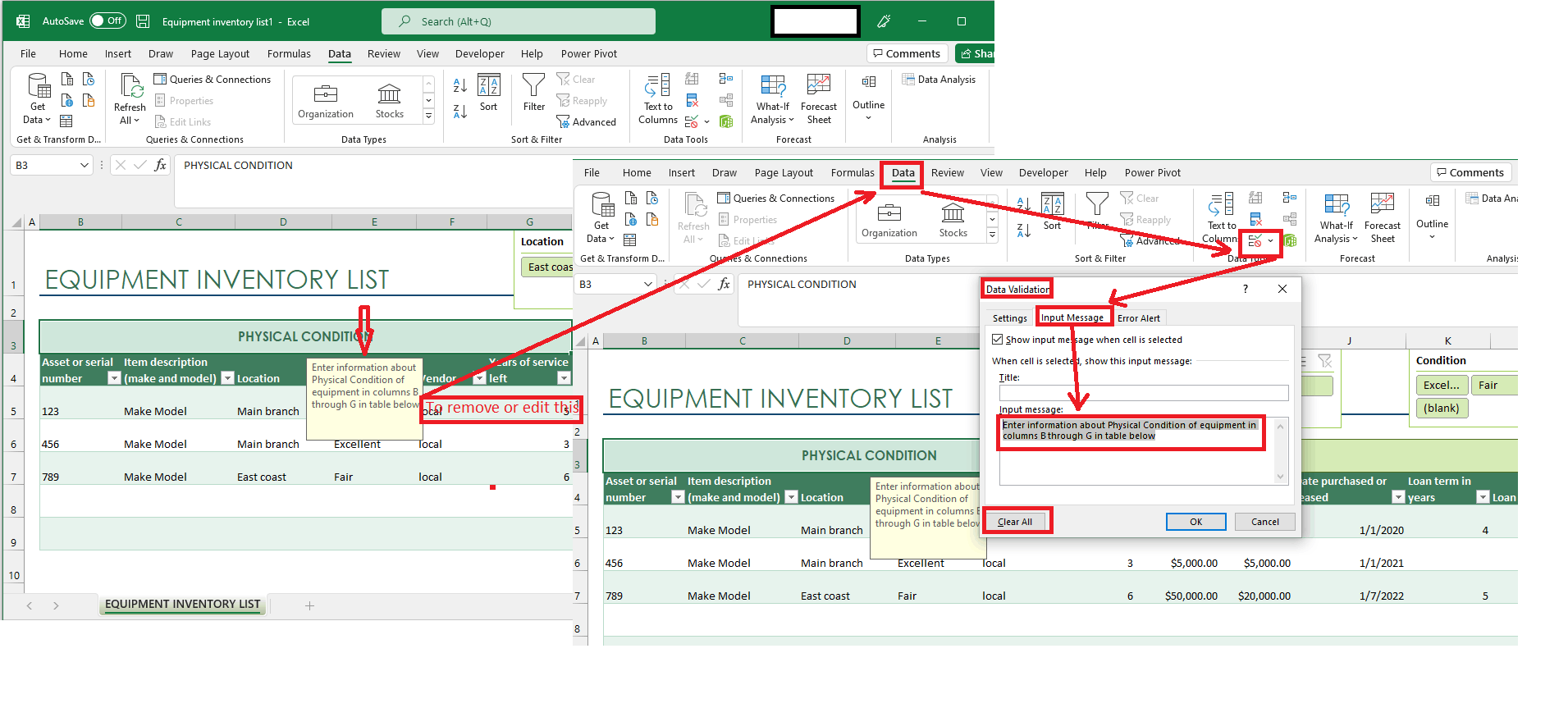 I will help you to remove pop-up comments in Excel template. First, I would like to explain these are not comments but these are Data Validation Messages.