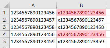 PS: sames the function"remove duplicates" use a different logic, it will recognize the long number (stored as text), and keep the different ones.