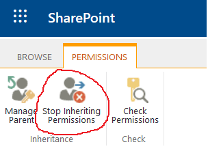 - On to the Permissions page, click Stop Inheriting Permissionsto break permissions inheritance from the parent.