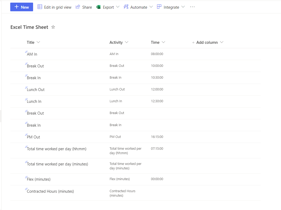 - I am unsure how to make a timesheet using lists as you can't seem to enter times and then I am unsure how I would be able to calculate hours worked