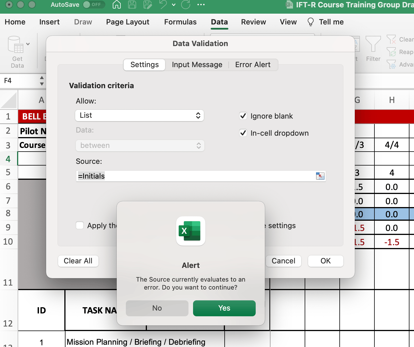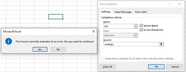 About "Data validation (this gives me an error message "This type of reference cannot be used in a Data Validation formula"). ", can you please try to share more detailed information for better understanding the situation?