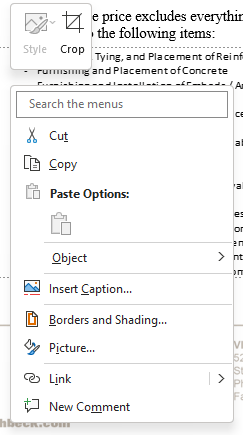 The border and excel column/row information, sheet number, and scroll bars stay visible, even when you are out of the excel object. You can see it is blocking test under the excel object/table. This happens every time you click out of the object. A workaround that we have found is to reset the view by going to view > web layout > then go back to print layout. This will make it go back to showing correct as the first image.
