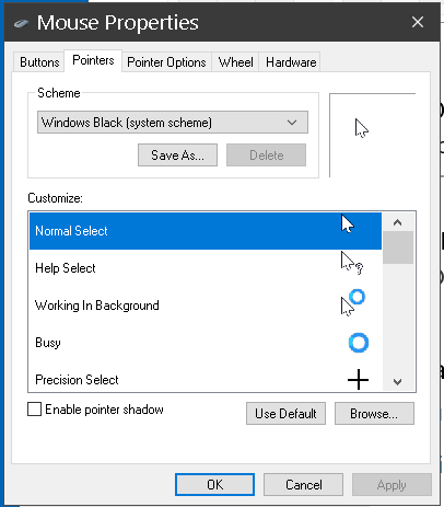 The is from "Additional mouse options"